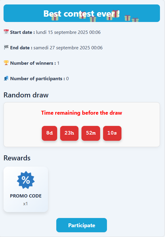 Launch custom giveaways in just a few clicks. Define start and end dates, set the number of winners, and let automation do the rest.